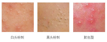 青春痘皮损好发于面部及上胸背部。青春痘(痤疮)的非炎症性皮损表现为开放性和闭合性粉刺。闭合性粉刺(又称白头)的典型皮损是约1毫米大小的肤色丘疹,无明显毛囊开口。开放性粉刺(又称黑头)表现为圆顶状丘疹伴显著扩张的毛囊开口。粉刺进一步发展会演变成各种炎症性皮损,表现为炎性丘疹、脓疱、结节和囊肿。炎性丘疹呈红色,直径1~5毫米不等;脓疱大小一致,其中充满了白色脓液;结节直径大于5毫米,触之有硬结和疼痛感;囊肿的位置更深,充满了脓液和血液的混合物。